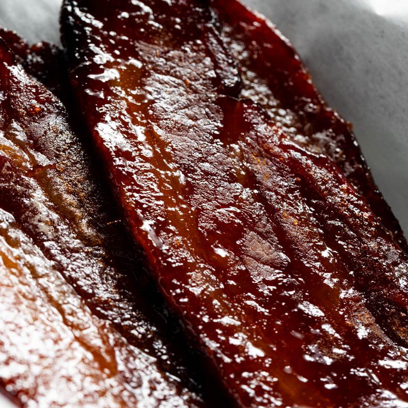 4 bacon slices per order. Marinated in your choice of sriracha cinnamon or bourbon maple.