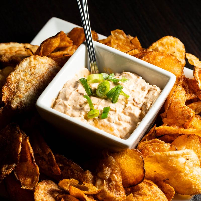 House-made French onion dip served with potato chips.