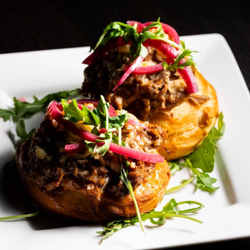 Home-made buttermilk biscuits topped with BBQ pulled pork, smoked gouda & pickled red onions.